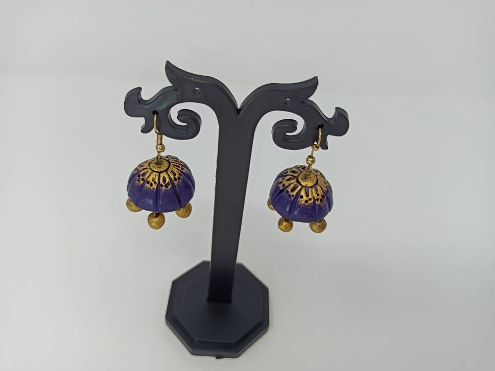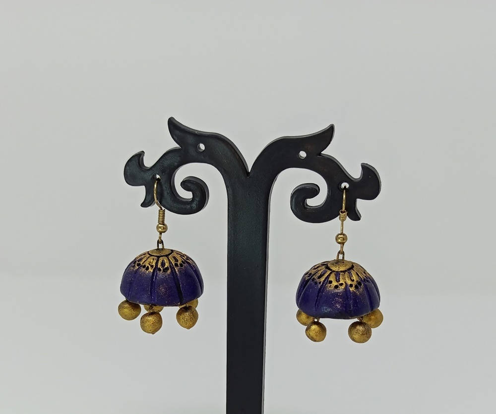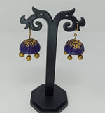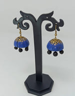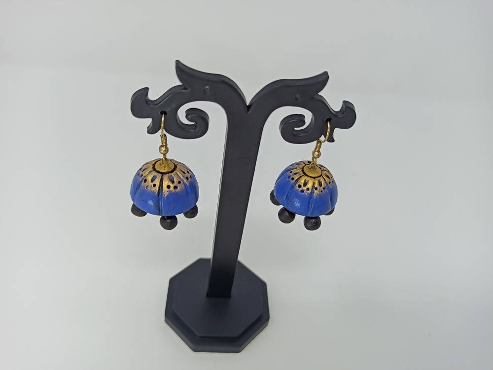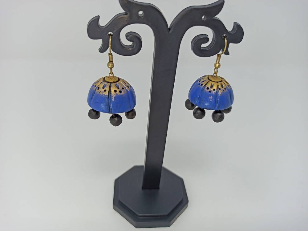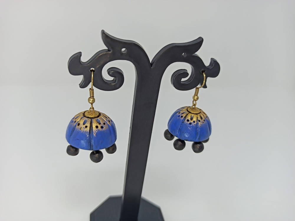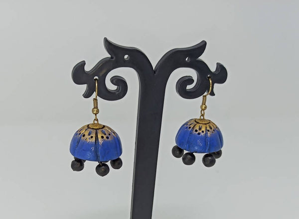 Terracotta Double Shade Hanging Jhumkas - Blue