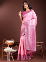 Astita Graceful Light Pink & Pink Banarasi Silk Saree with Rich Zari Woven Border - Traditional Elegance for Celebrations