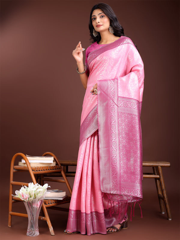 Astita Graceful Light Pink & Pink Banarasi Silk Saree with Rich Zari Woven Border - Traditional Elegance for Celebrations - Distacart