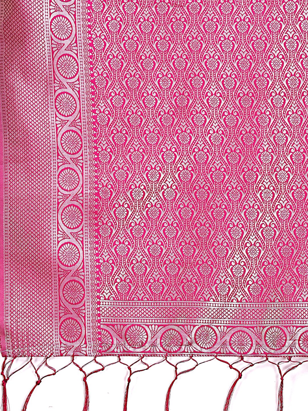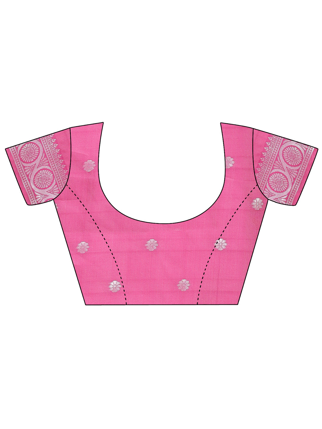 Adorn yourself in timeless elegance with this exquisite Light Pink and Pink Banarasi silk saree, featuring a luxurious zari-woven border and intricate detailing throughout. Crafted for festive occasions and traditional ceremonies, this saree is a blend of regal charm and rich cultural heritage. The silky smooth drape and lustrous finish make every step feel majestic.