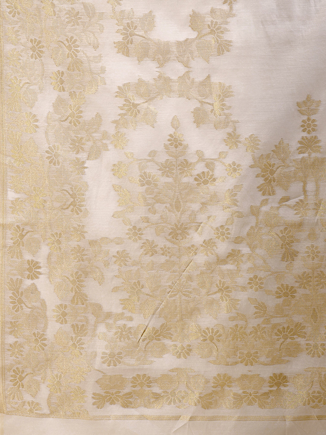 Astita Off White Cotton Woven Zari Work Traditional Tassel Saree