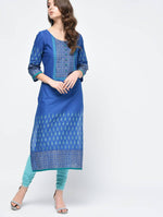 Cheera Hand Block Print Royal Blue Color Straight Kurta
