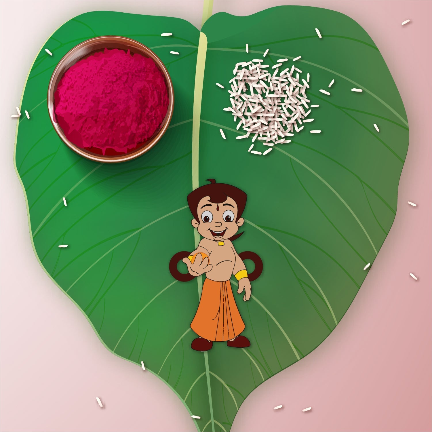 Indianvibez Chota Bheem Wooden Rakhi with Rudraksha, Cartoon Rakhi for Bro, Shop India - Kids Rakhi