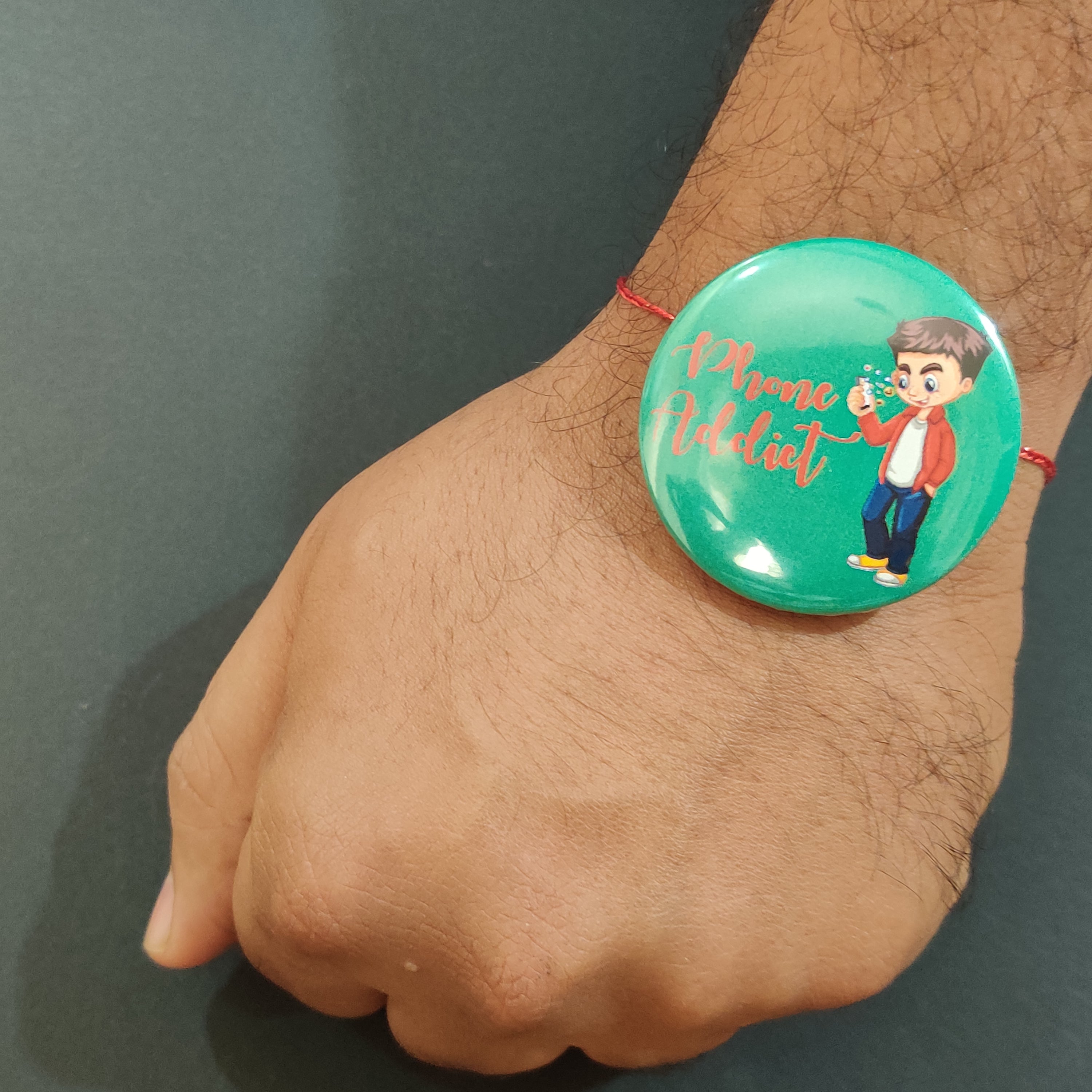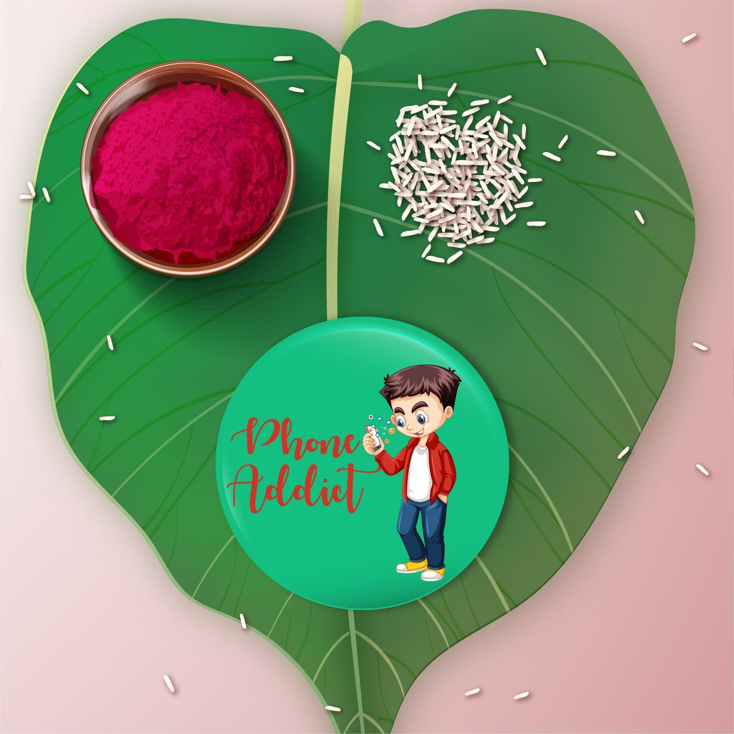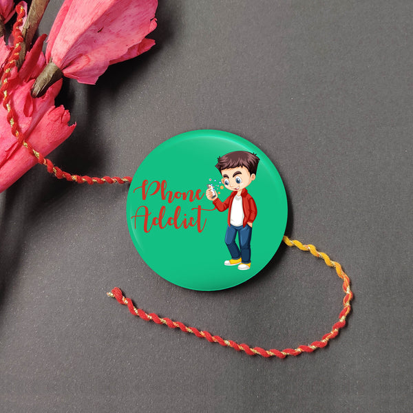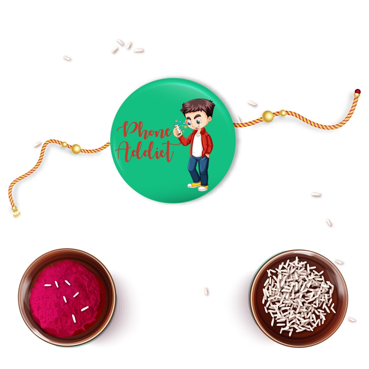 Indianvibez Phone Addict Metal Rakhi with Fridge Magnet
