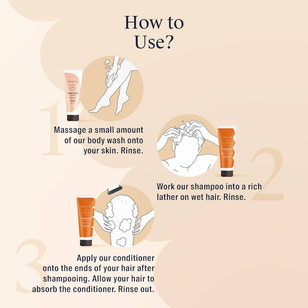 Arata New Shower Power Set: Combo PackThis combo contains: Arata Cleansing Shampoo: 75 mlArata Cleansing Body Wash: 75 mlArata Nourishing Condition...