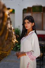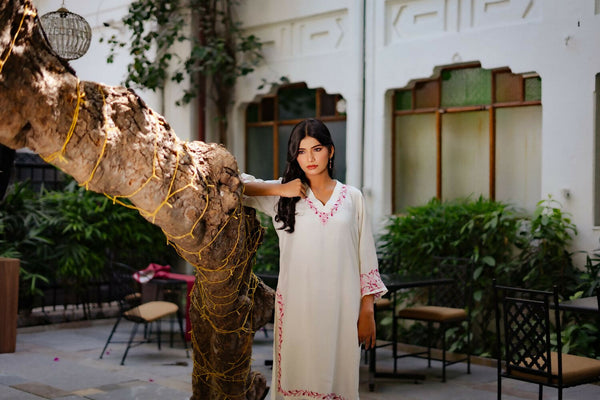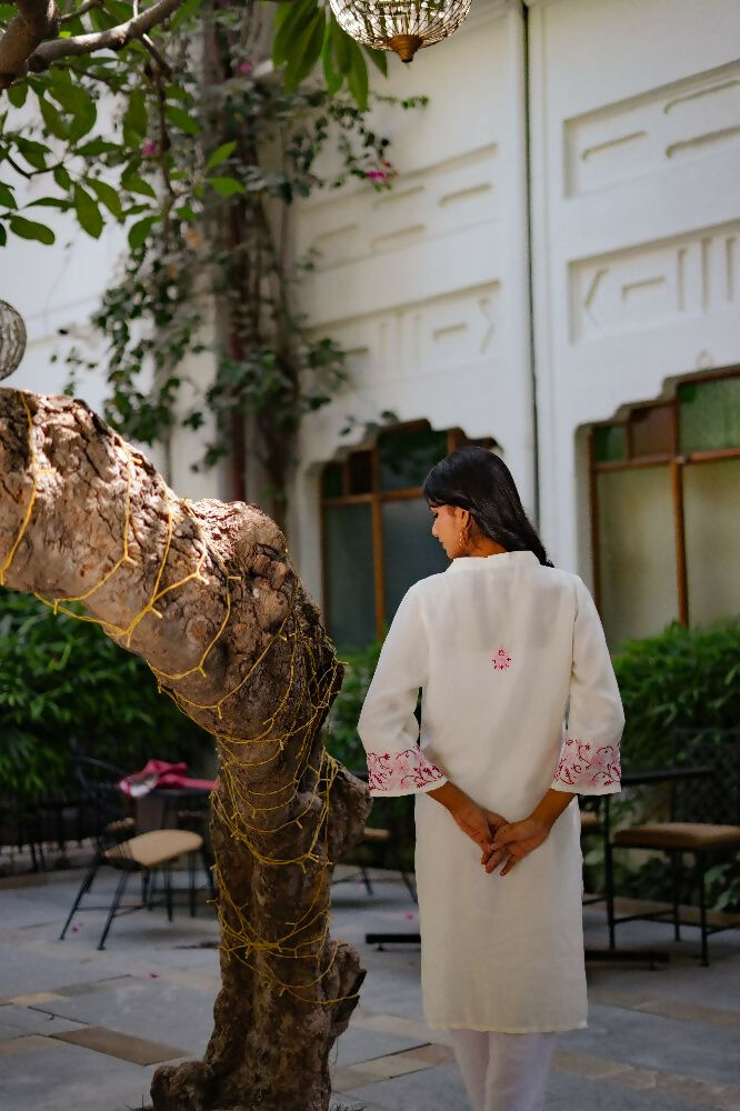 Zibaa Ivory & Pink Muslin Chikankari Kurta