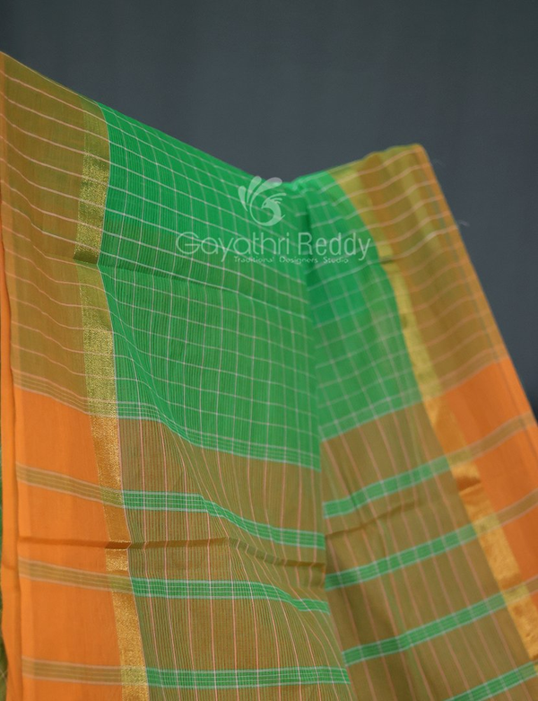 Light Green With Checks Pure Mangalgiri Cotton Saree By Gayathri Reddy Designer Studio