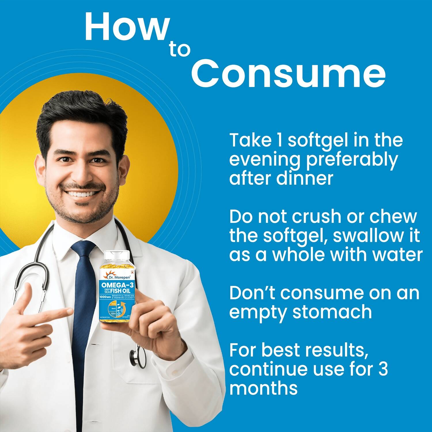 Dr. Morepen Omega 3 Deep Sea Fish Oil SoftgelsDirections For Use:1-2 soft gels per day for Men & Women above 25 years or as suggested by the ex...