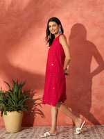 InWeave Red Mirror Work Round Neck W/S Dress
