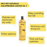 Rey Naturals Castor OilIngredients:100% Pure & Natural coldpressed castor oilHow to use: Apply on scalp and hair, massage for 10-15 minutes Kee...