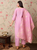 Ode by House of Pataudi Yoke Design Regular Thread Work Kurta with Trousers & With Dupatta Product Details Pink yoke design Kurta with Trous...