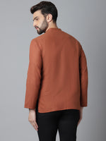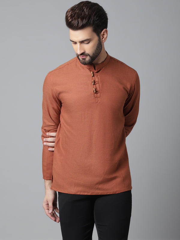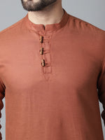 Even Apparels Rust Pure Cotton Kurta With Band Collar