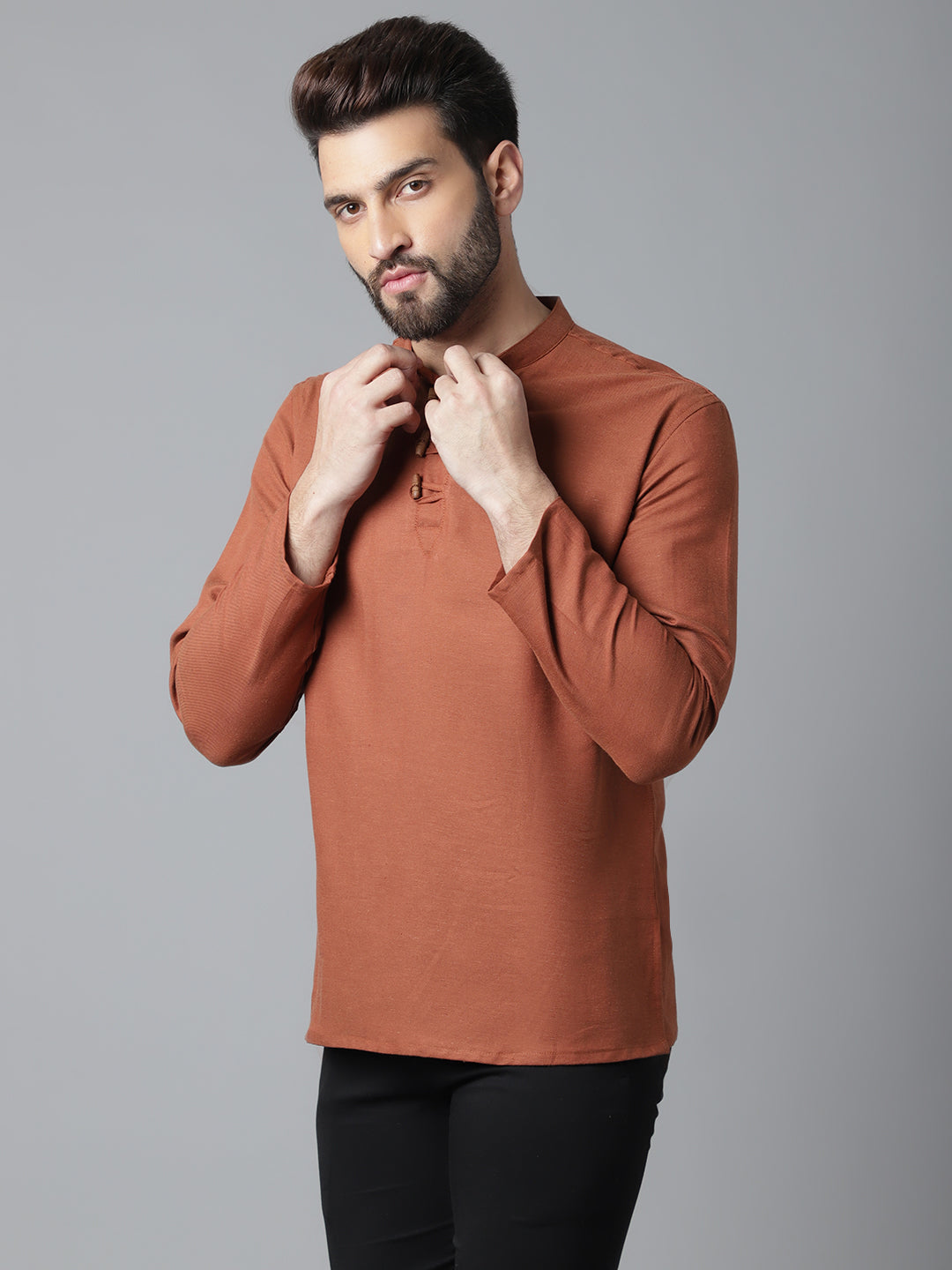 Even Apparels Rust Pure Cotton Kurta With Band Collar About the product: Pure cotton kurta with band collar. Additional Information: Fabric: P...