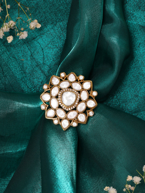 Ruby Raang Traditional Gold Polished White Kundan Ring