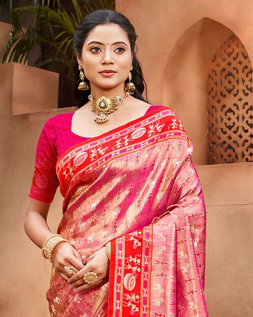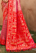 Sangam Prints Red Kanjivaram Silk Woven Work Traditional Saree - Free Size