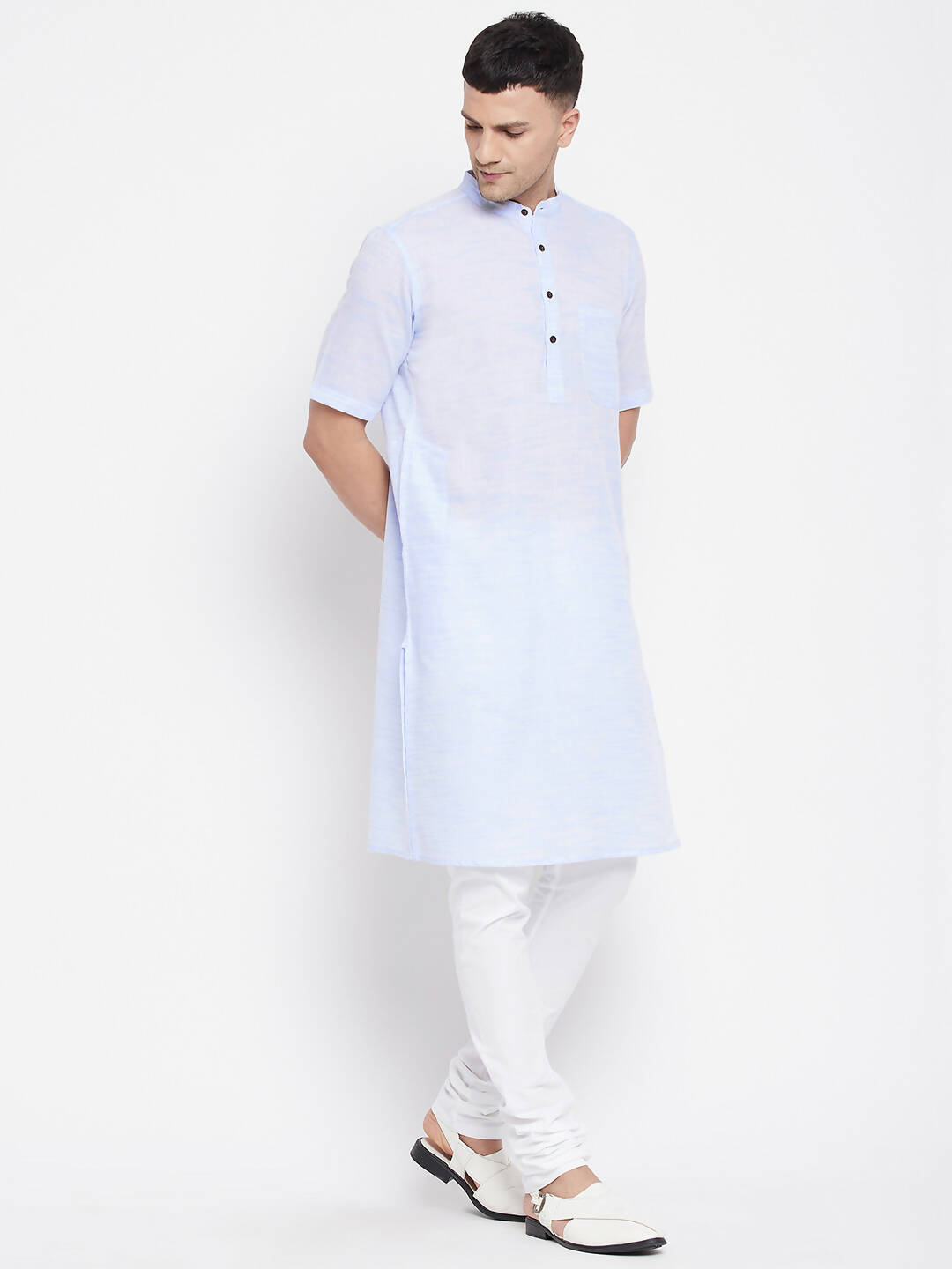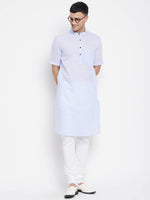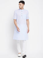 Even Apparels Blue Color Pure Cotton With Band Collar Men's H/S Kurta - Distacart