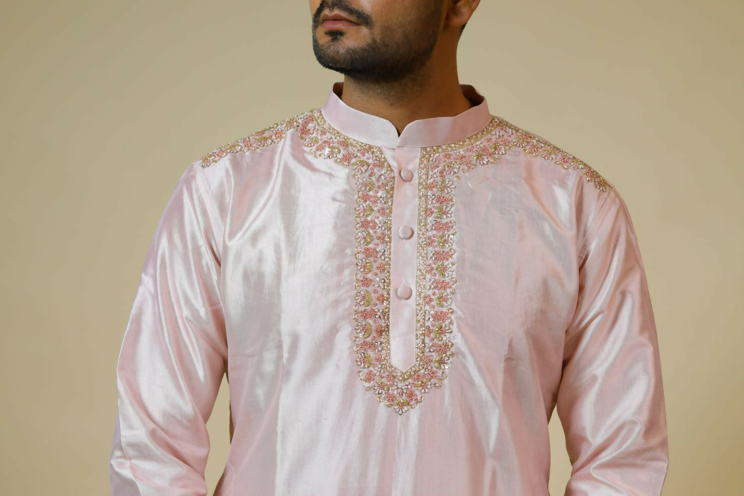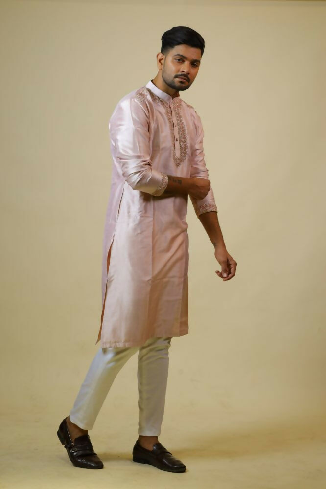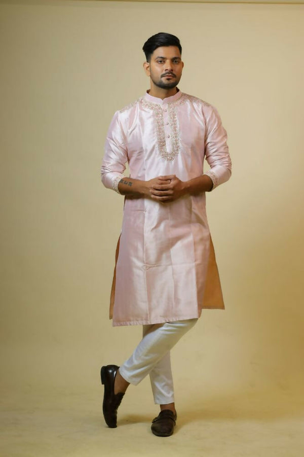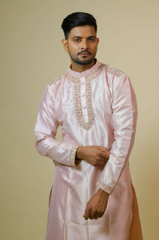 Light Coral Embroidered Collar Designer Kurta by Hilo DesignThe Kurta is best suited for you, If you want to grab a royal and elegant look with min...
