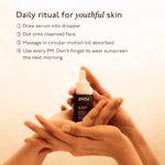• Dot your cleansed face with a few drops of serum, then gently massage into the skin with a circular motion until absorbed.