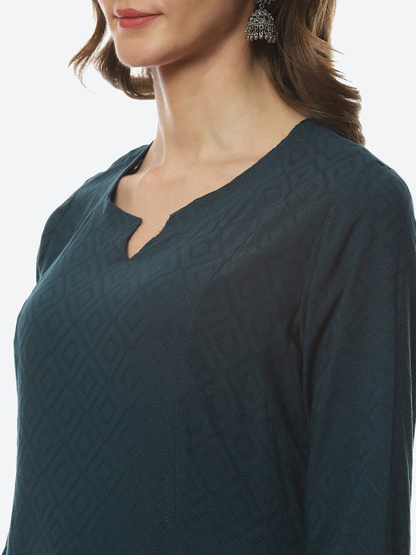Biba Women Ethnic Motifs Kurta with Palazzo & Dupatta Product Details Teal solid Kurta with Palazzos with dupatta Kurta design: Ethnic ...