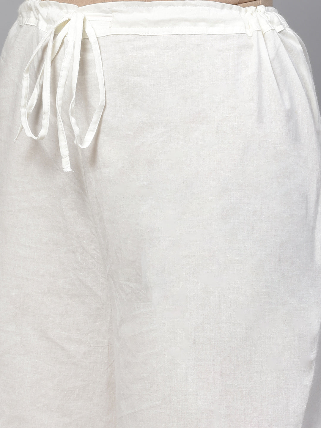 Off-White solid palazzos, has a partially elasticated waistband, drawstring closure