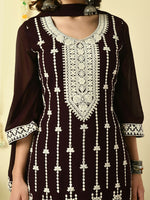 Myshka Women's Coffee Brown Georgette Kurta & Palazzos With Dupatta Party Sets - S
