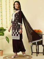 Myshka Women's Coffee Brown Georgette Kurta & Palazzos With Dupatta Party Sets