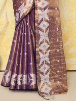 Piyari Fashion Women's Gold Blue Dual Tone Organic Tissue Jamdani Saree With Blouse Piece