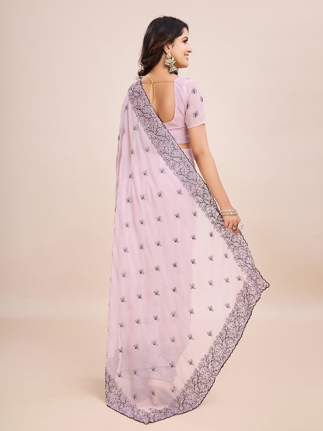 • Lavender and black saree