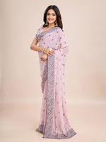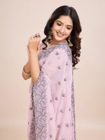 kasee Floral Embroidered Pure Chiffon Ready to Wear Saree Product Details Design Details Lavender and black saree Floral embroidered sare...