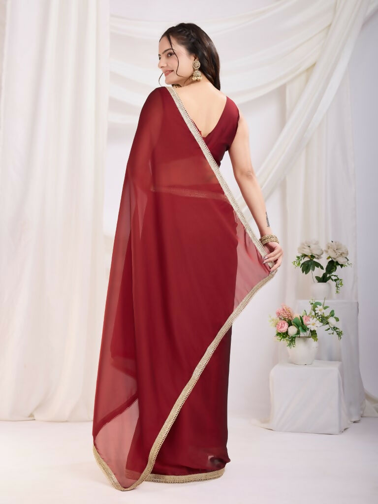 Maroon Rangoli Silk Solid, Lace Border Ready To Wear Saree - Kashvi