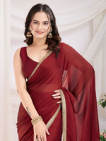 Maroon Rangoli Silk Solid, Lace Border Ready To Wear Saree - KashviAttractive These Party Wear Ready To Wear Saree in Fine Colored.These Saree Are ...