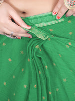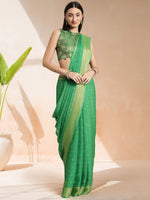 • Green and gold-toned saree