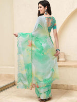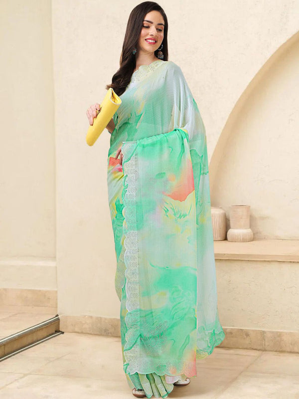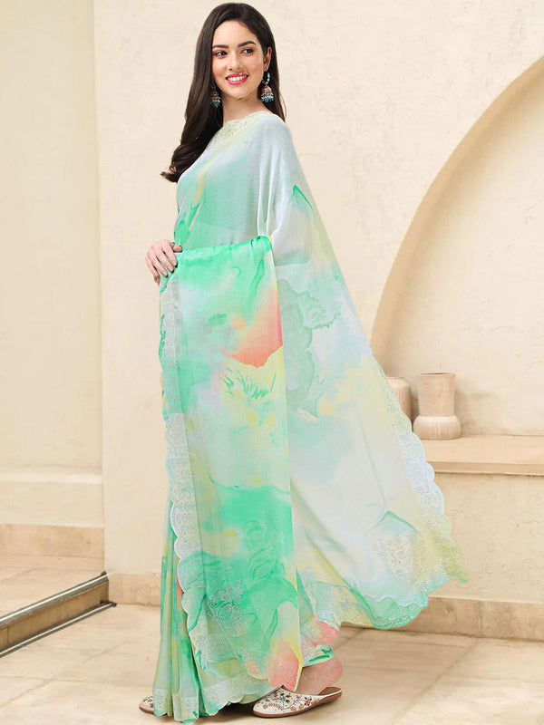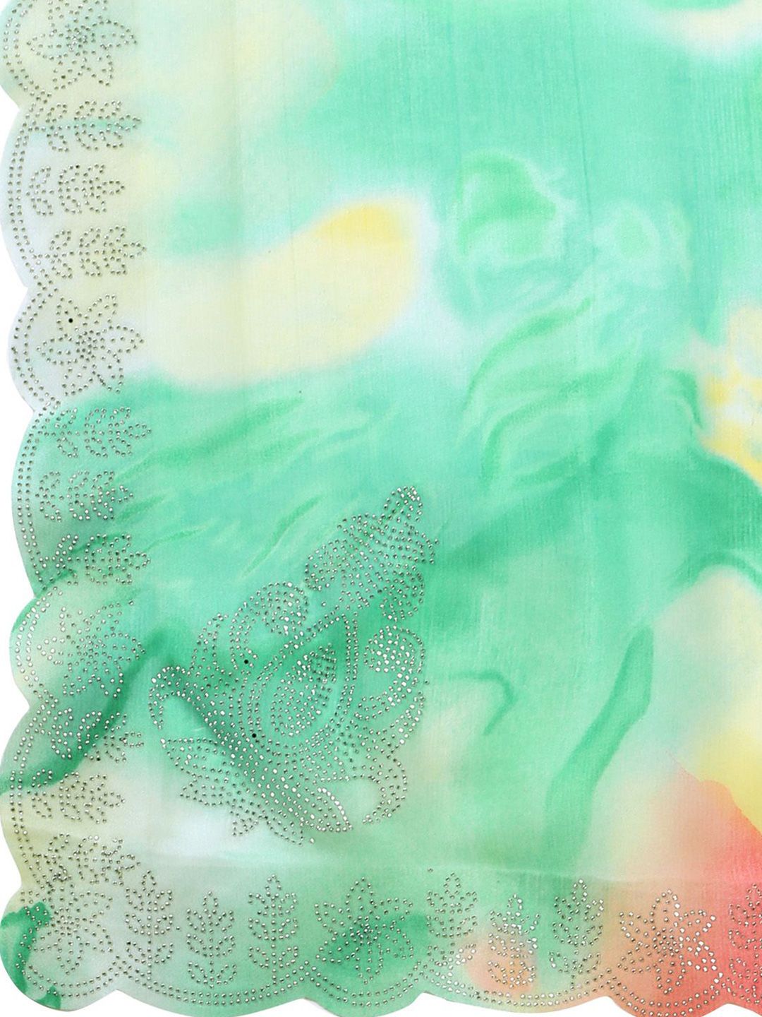 Mitera Tie and Dye Beads and Stones Poly Chiffon Ready to Wear Saree Product Details Design Details Green and white saree Tie and dye dyed sar...