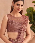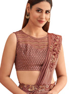 Pink Satin Embroidered Ready To Wear Saree With Unstitched Blouse Piece - Nandika - Free Size