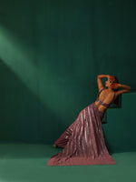 trueBrowns Mauve Cotton Silver Lurex Striped Ready to Wear SareeDescription Cotton Lurex pre-stitched pleats saree with solid pleats and striped lu...