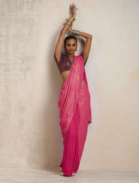 trueBrowns Pink Gold Lurex Ready To Wear Saree