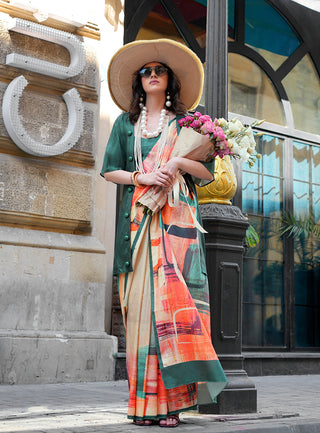 Monjolika Fashion Multi Colour Silk Blend Digital Print Casual Classic Saree