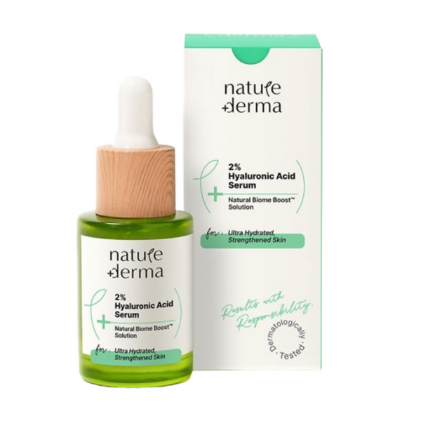 Transform your skin with Nature Derma 2% Hyaluronic Acid Serum with Natural Biome Boost Solution. This lightweight and non-sticky formula is infused with an optimal concentration of low-weighted hyaluronic molecules to help enhance skin elasticity and hydration. The Natural Biome Boost Solution ensures a healthy microbiome balance on the skin's surface and protects from environmental damage skin.