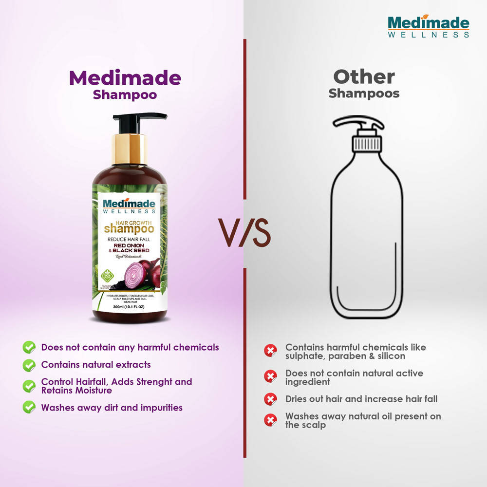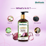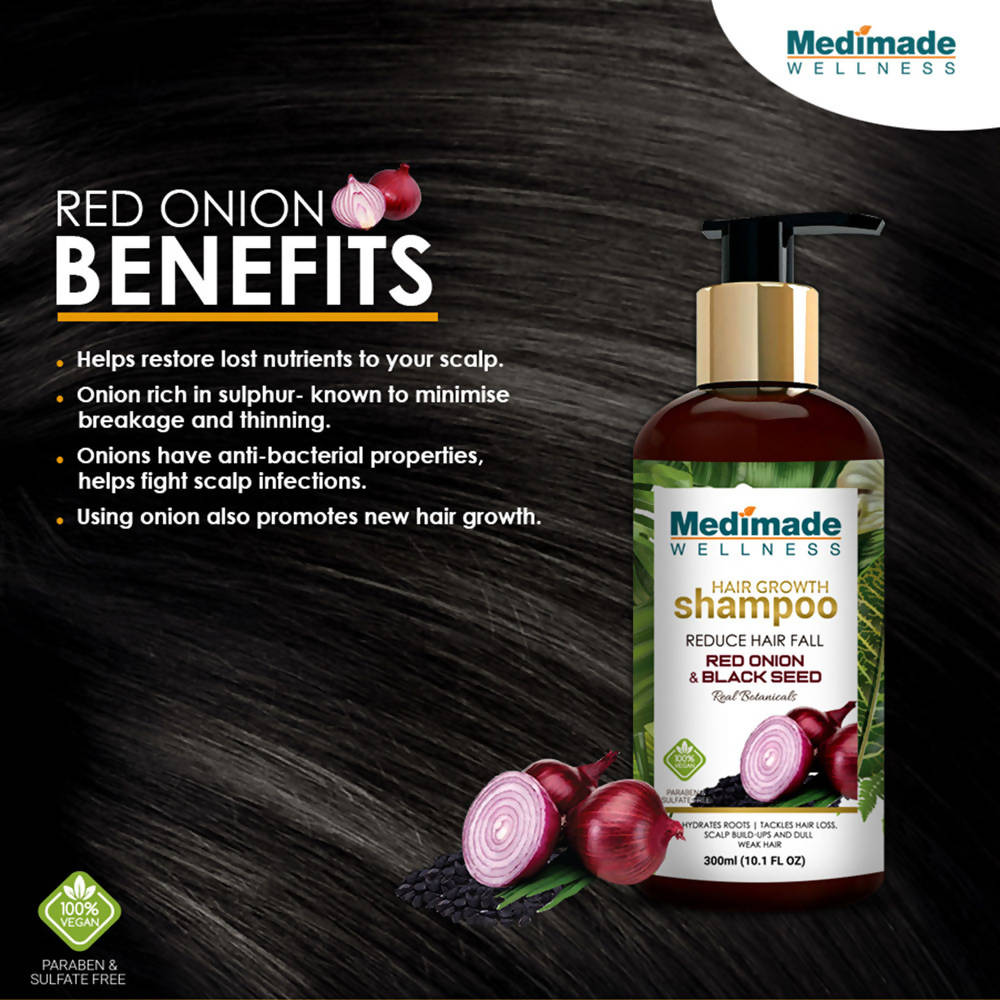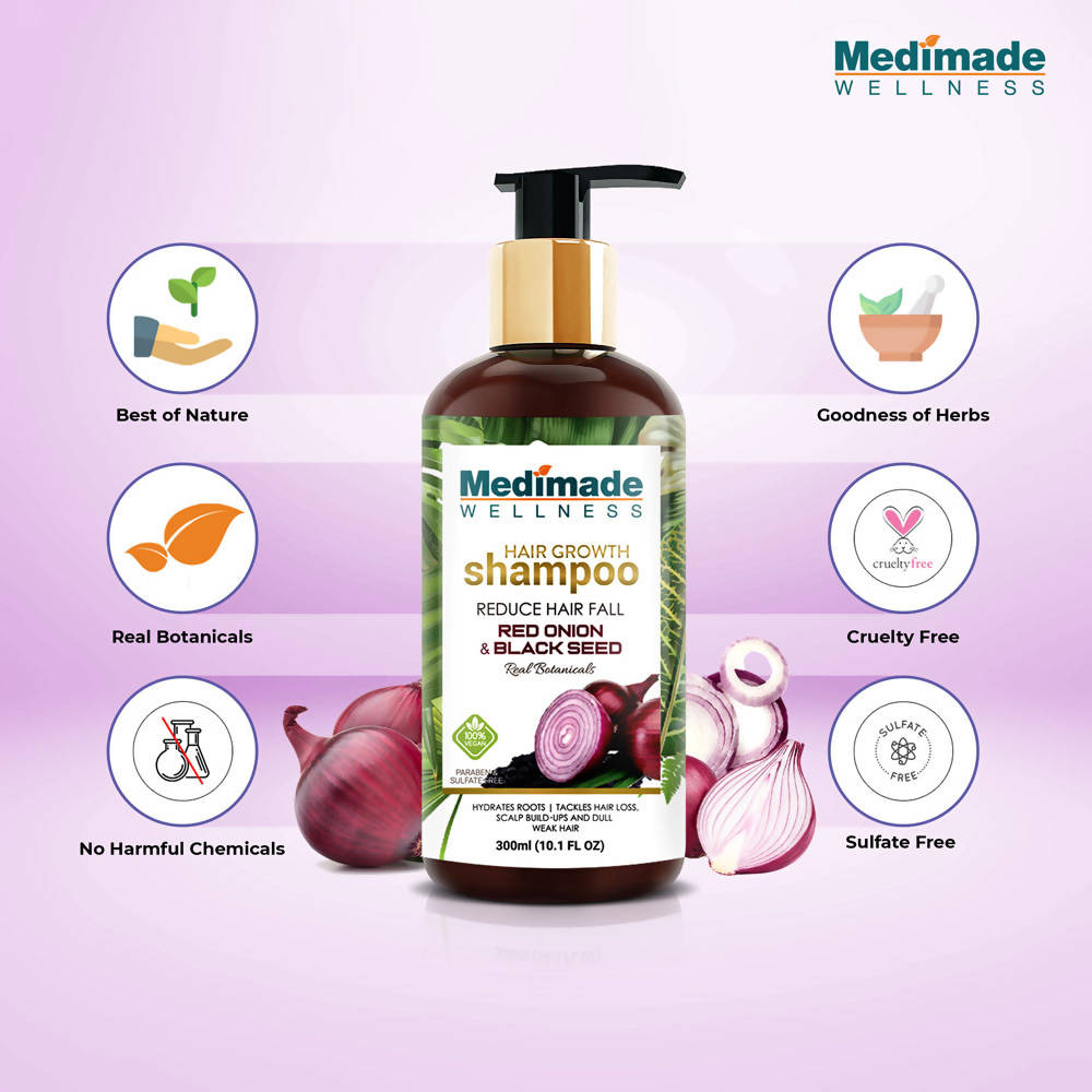 Medimade Red Onion and Black Seed Hair Shampoo is a herbal shampoo formulated with natural ingredients including red onion extract and black seed oil. This shampoo is designed for daily hair and scalp care, providing a cleansing and moisturizing routine suitable for men and women.