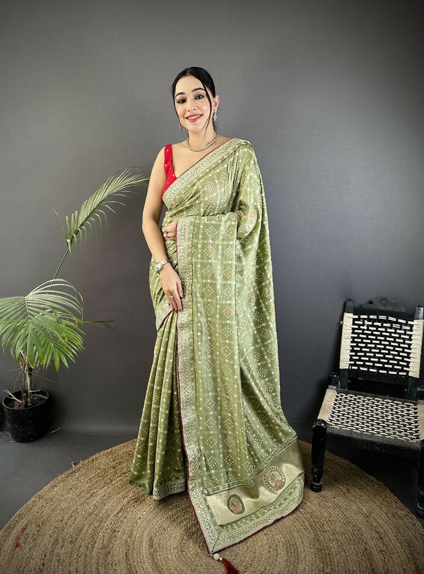 Joban Fashion Mehendi Green Bandhej Bandhani Vichitra Silk Bandhani Prints Saree