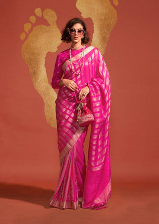 Monjolika Fashion Magenta Color Viscose Handloom Silk Weaving Saree With Blouse