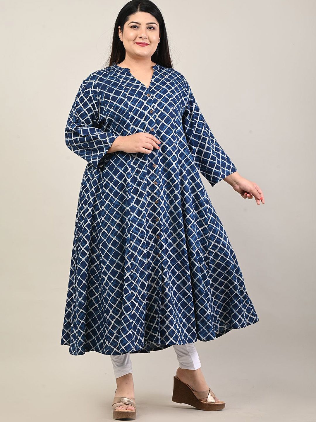 Swasti Plus Size Checked Mandarin Collar Anarkali Kurta Product Details Colour: blue & white  Checked Mandarin collar Long, regular sleeve...