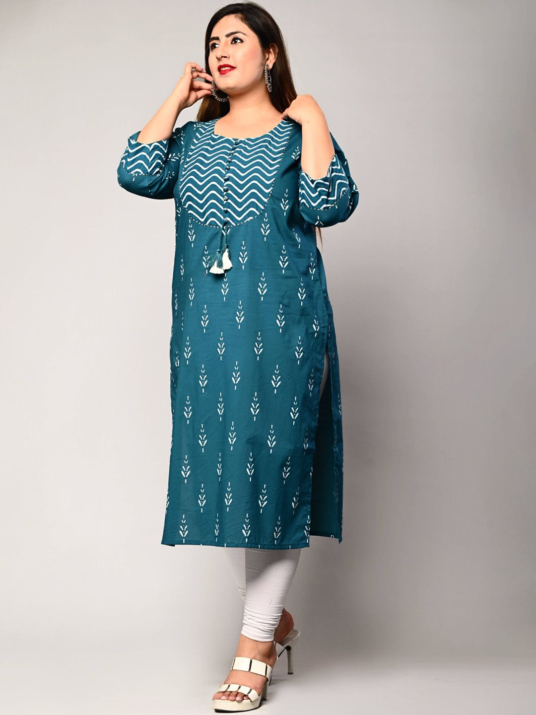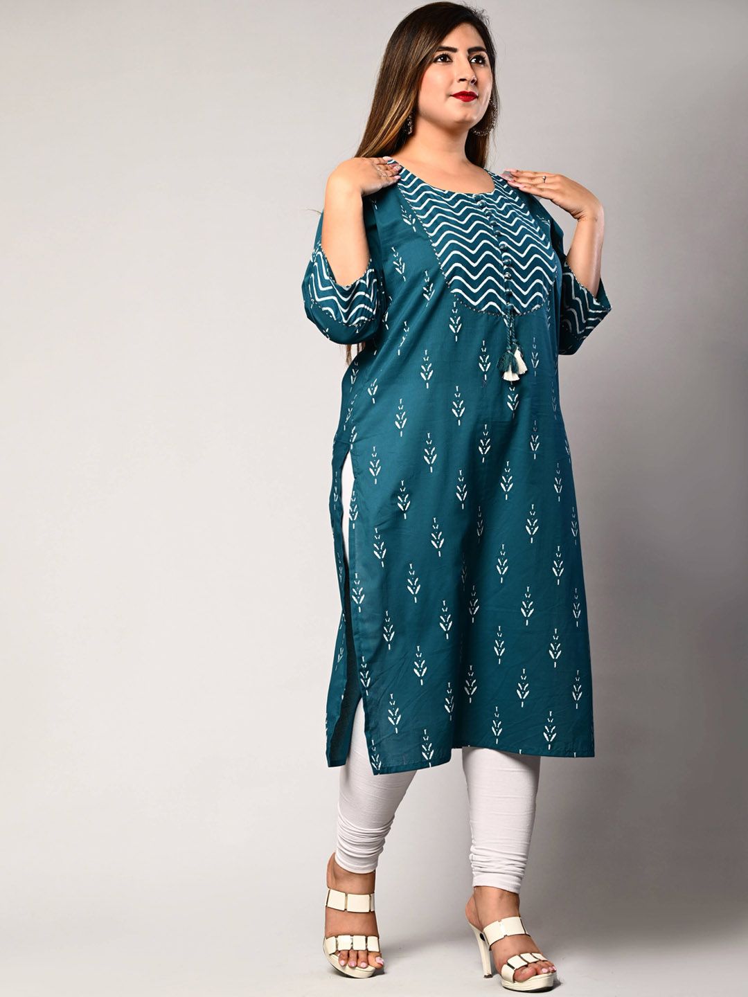 Swasti Women Blue & atlantic deep Ethnic Motifs Printed Chikankari Floral Kurta - 4XL
