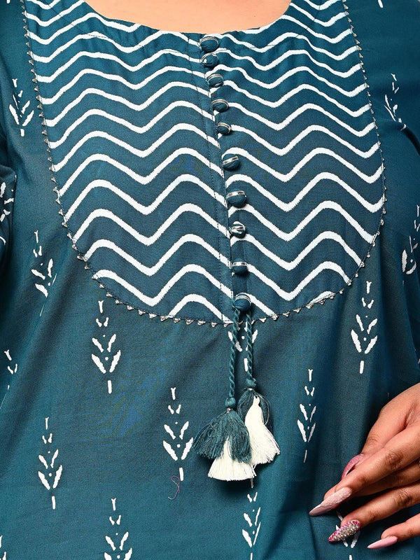 Swasti Women Blue & atlantic deep Ethnic Motifs Printed Chikankari Floral Kurta