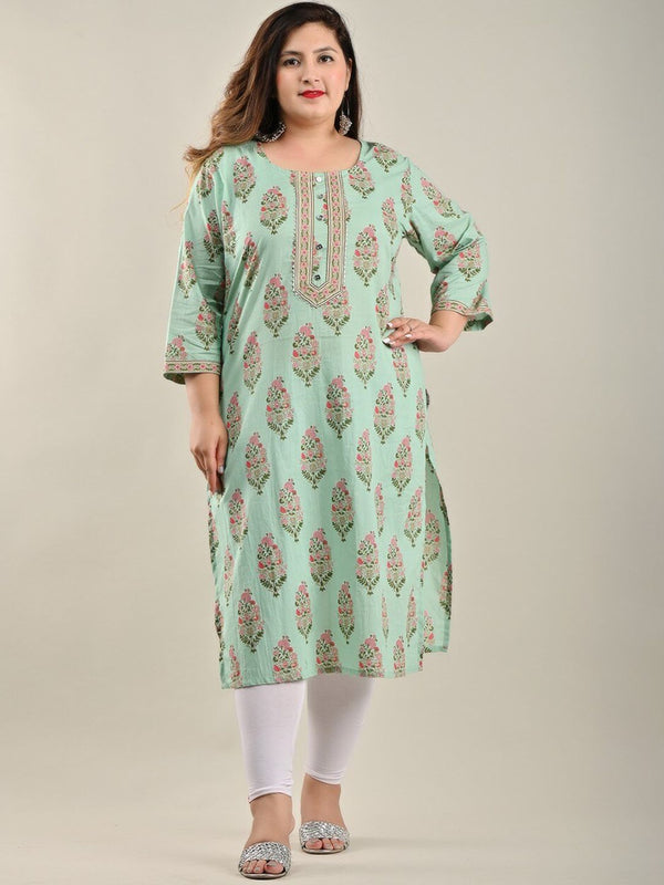 Swasti Women Plus Size Green Floral Printed Floral Kurta