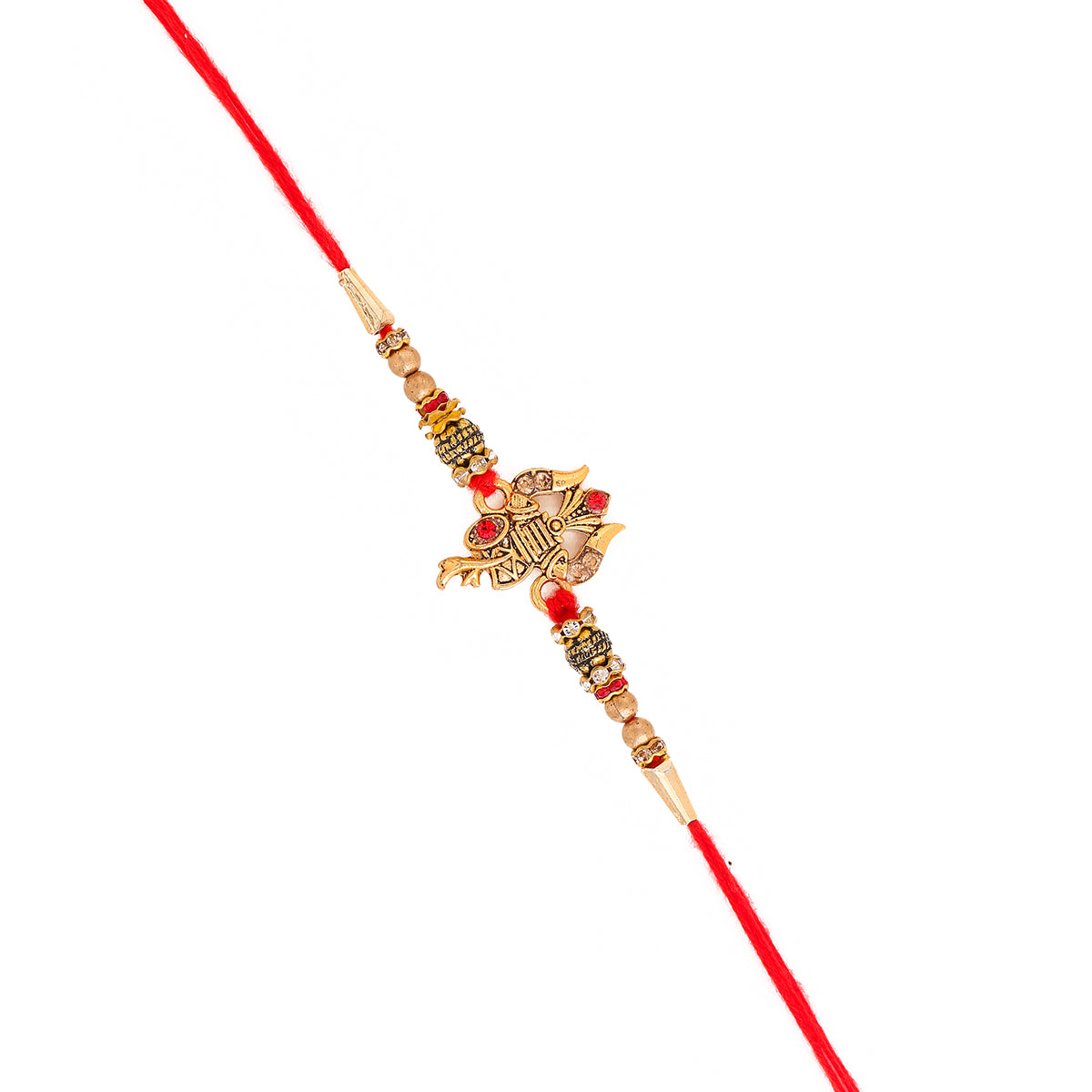 • Let this divine Ganesha Rakhi bring good fortune, prosperity, and health to your brother's life. Tie this designer Ganesha rakhi on your brother's wrist on the pious occasion of Raksha Bandhan.