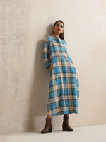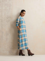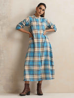 trueBrowns Beige Check Flared Winter Dress - Distacart