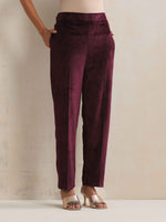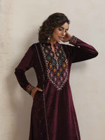 trueBrowns Purple Velvet Geometric Embroidered Kurta Pant Dupatta Set - S-M