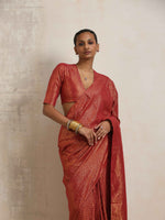 • Elevate your style with this maroon cotton gold lurex Plus Size saree. It's an ideal blend of elegance and comfort.