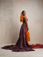trueBrowns Maroon Gold Metallic Ready To Wear Plus Size Saree